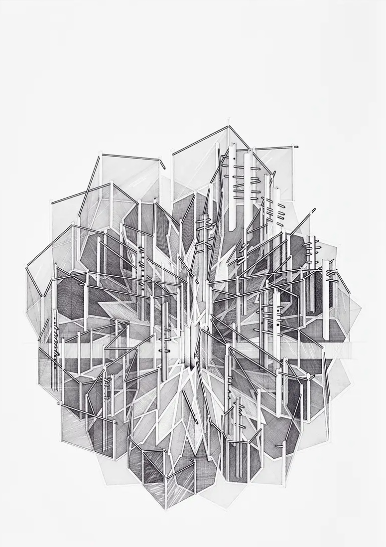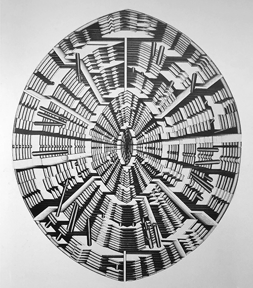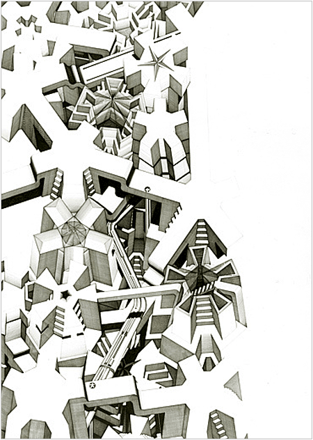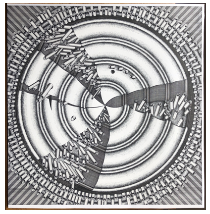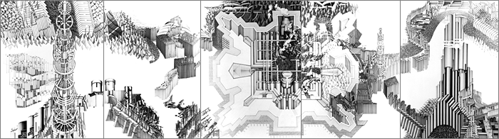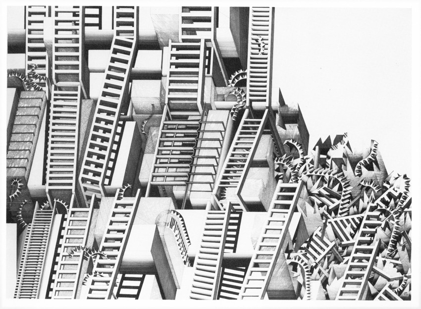 Pen & Ink on PaperThe Iron Siege of Pavia 1973-75 Pen & Ink on Paper 144 x 510cm (Five panels, each 144 x 102cm)Ottoman Series: No 1 1974 Pen & Ink on Paper 50 x 50cmFountains of Suleimein from Ottoman Series 1974 Pen & Ink on Paper 50 x 50cmUntitled No II – Seven Citadels Series 1974 Pen & Ink on Paper 70 x 50cmMuqarna 1