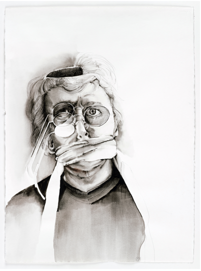Pen, Ink & Wash on PaperSelf Portrait (Hole in the Head)