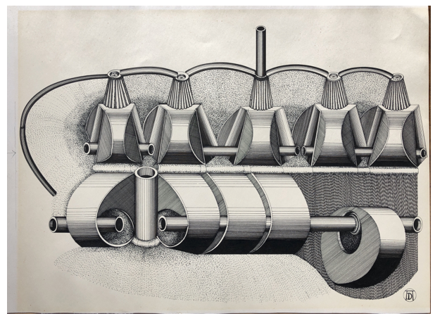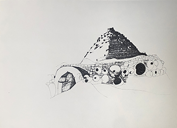 Kilns, Potters Village on Island of Djerba 1968-69 Pen & Ink on Paper 48 x 66cmAegean Series 1970 Pen & Ink on Paper 50 x 72cmAegean Series 1970 Pen & Ink on Paper 50 x 72cmNinia Porphyrogenetis (Born in the Purple) 1970-71 Pen & Ink on Paper 50 x 70cmUntitled