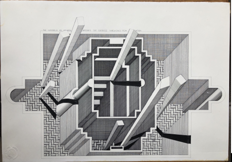 140 x 140cmHouse of the Mystic Supper 1972-73 Pen and Ink on paper 50x 50cmTetrapeza from Seven Citadels