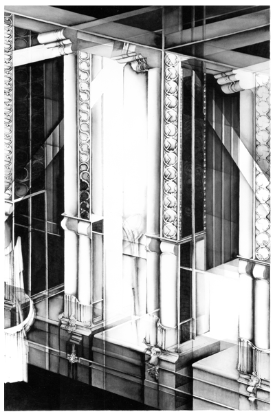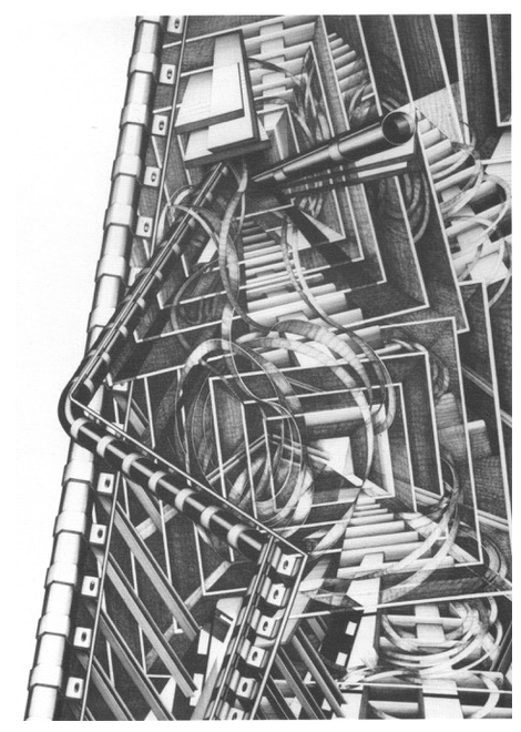 96 x 70cmWindow Dynamics 1993 Pen & Ink on Paper 70 x 50cmPortrait of the Artist: Double Vision (Book in the Head)