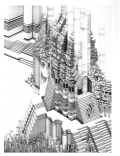 75 x 52cmUrbs Militans 1984 Pen & Ink on Paper 152 x 103cmShakti Vijayanagara 1985 Pen & Ink & Wash on Paper 152 x 103cmThe Cave in the Mountain (Sambalpur) 1985/86 Pen & Ink on Paper 80 x 58cmDe–de-decco-Decan 1985/6 Pen & Ink on Paper 152 x 103cmDescent of the Rivers 1986 Pen & Ink & Wash on Paper 120 x 75cmKoothambalam (Kerala)- from Temples & Tenements) 1987 Pen & Ink & Wash on Paper 152 x 103cm Untitled Ink on Khadi Paper 21 x 15cmOrder and Disorder Pen & Coloured Ink on PaperSaraswati Bathing – Temples & Tenements 1987 Pen & Ink & Wash on Paper 118 x 87.5cmThe Temple as Holy Mountain from First Indian Series 1980 Pen & Ink on Paper 112 x 82cmUntitled – Manchester Suite 1982 Sepia, Black Ink & Wash on Paper 78 x 68cmHomage to Stanley Spencer